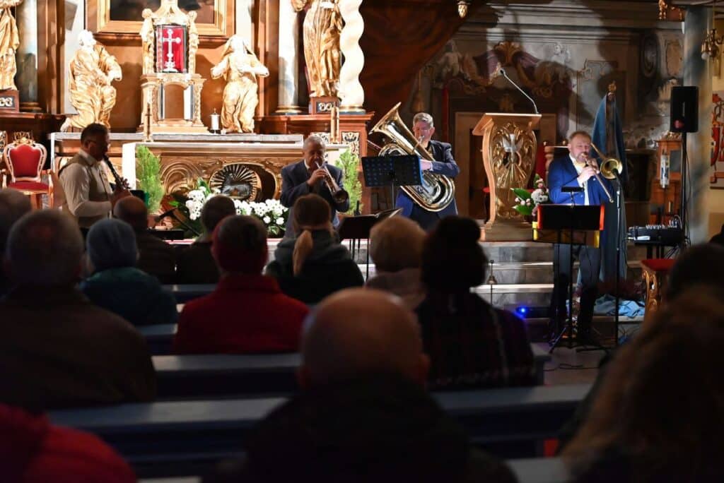 Na koncercie zaprezentował się zespół Karkonoski Dixieland, w składzie: Piotr Zbrug (trąbka), Witold Pelc (klarnet), Roman Buczniewski (klawisze), Leszek Bartnicki (perkusja), Roman Jurek (tuba) i Artur Nowak (puzon, śpiew), który przeniósł słuchaczy w klimaty muzyki południowoamerykańskiej. Wykonano utwory z gatunku spirituals gospel, czyli pieśni o głębokim przesłaniu duchowym, powstałe na bazie tekstów biblijnych, które swoje korzenie mają w tradycji zarówno Starego, jak i Nowego Testamentu. Jak zaznaczył Artur Nowak, wiele z prezentowanych utworów powstało ponad 100 lat temu, odzwierciedlając wiarę i nadzieję na lepszy świat a ich przesłanie wciąż jest aktualne i głęboko poruszające.